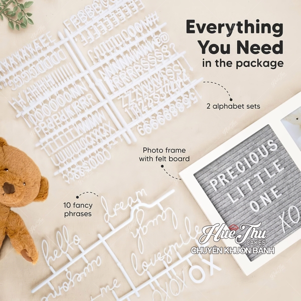 - Bộ sản phẩm đầy đủ: Bao gồm bảng vải nỉ, khung ảnh, vỉ chữ decor, giúp bạn tiết kiệm thời gian và công sức.