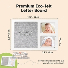 - Chất liệu cao cấp: Bảng vải nỉ mềm mại, bền đẹp, an toàn cho bé. Khung ảnh được làm từ chất liệu gỗ tự nhiên, chắc chắn và sang trọng.