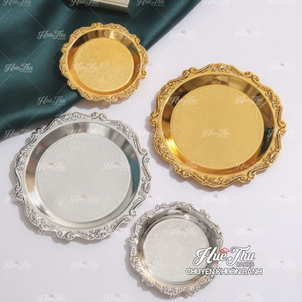 Đĩa inox 10/15/20/25cm (màu vàng, bạc) trang trí decor bàn tiệc, mâm cúng