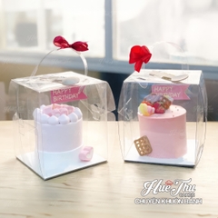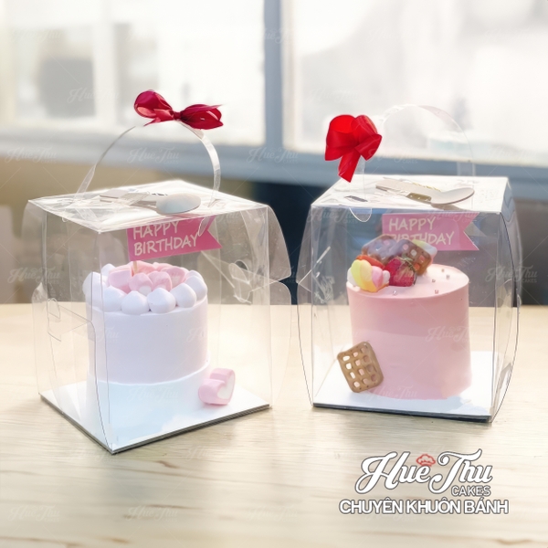 - Hộp mica trong suốt giúp tôn lên vẻ đẹp của những chiếc bánh.