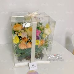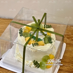 - Hộp Mica vuông đựng bánh thạch rau câu, bánh bông lan, xôi hoa...rất sang trọng, tiện lợi.