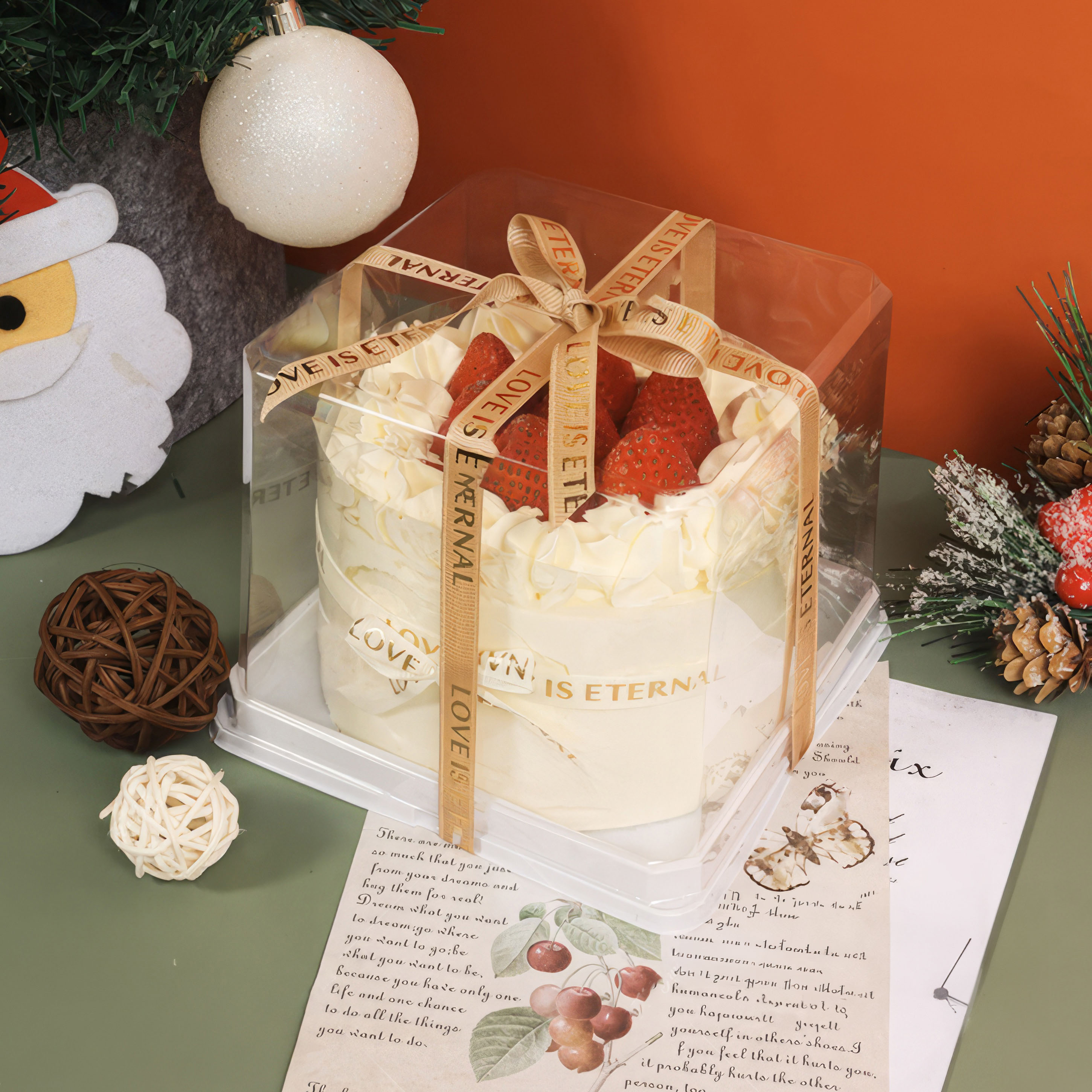 Thiết kế Hộp có nắp. Đế hộp màu trắng sang trọng, cứng cáp tiện dụng phù hợp đựng nhiều dòng bánh. Hộp được chống trơn, trượt nhờ lớp đế có rãnh giảm ma sát. Hộp nhựa nắp chụp được làm từ chất liệu nhựa trong ở nắp giúp người dùng có thể dễ dàng quan sát bánh từ bên ngoài tạo nên một vẻ ngoài độc đáo cho bất kì sản phẩm bánh nào.
