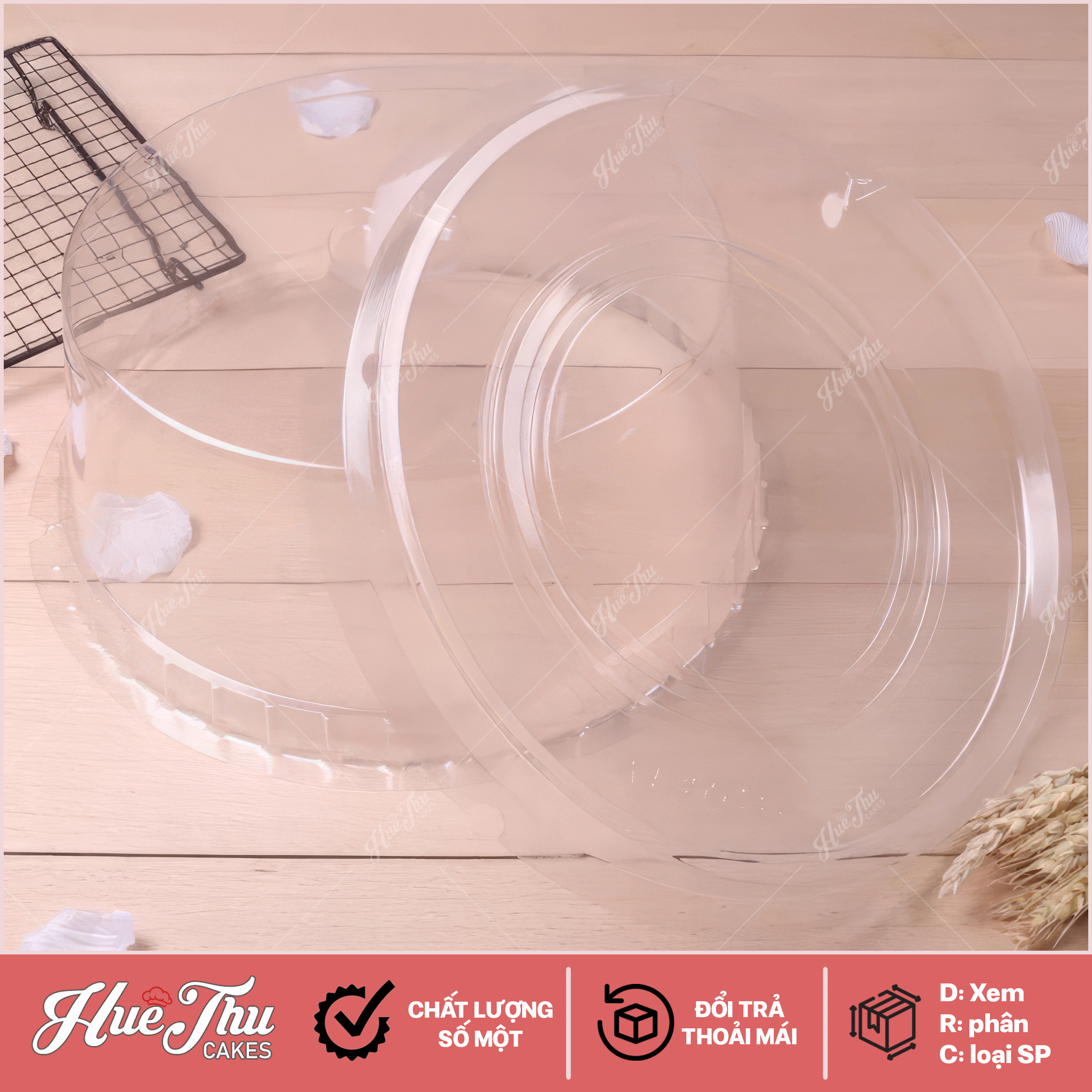 Thiết kế Hộp có nắp. Thiết kế đơn giản, tiện dụng phù hợp đựng nhiều dòng bánh. Hộp được chống trơn, trượt nhờ lớp đế có rãnh giảm ma sát. Hộp nhựa nắp chụp được làm từ chất liệu nhựa trong ở nắp giúp người dùng có thể dễ dàng quan sát bánh từ bên ngoài tạo nên một vẻ ngoài độc đáo cho bất kì sản phẩm bánh nào.