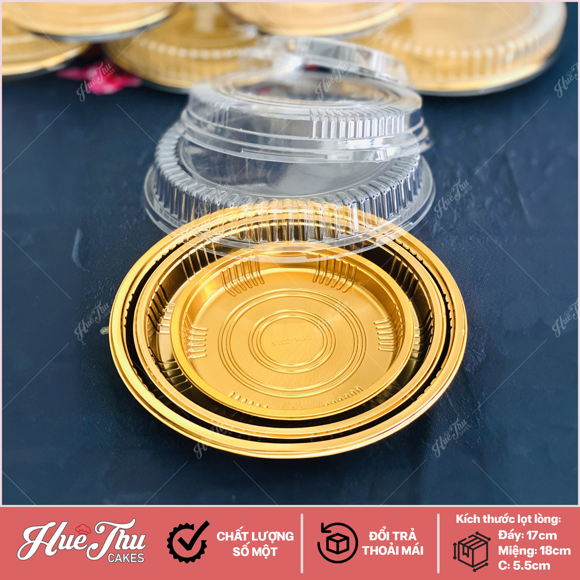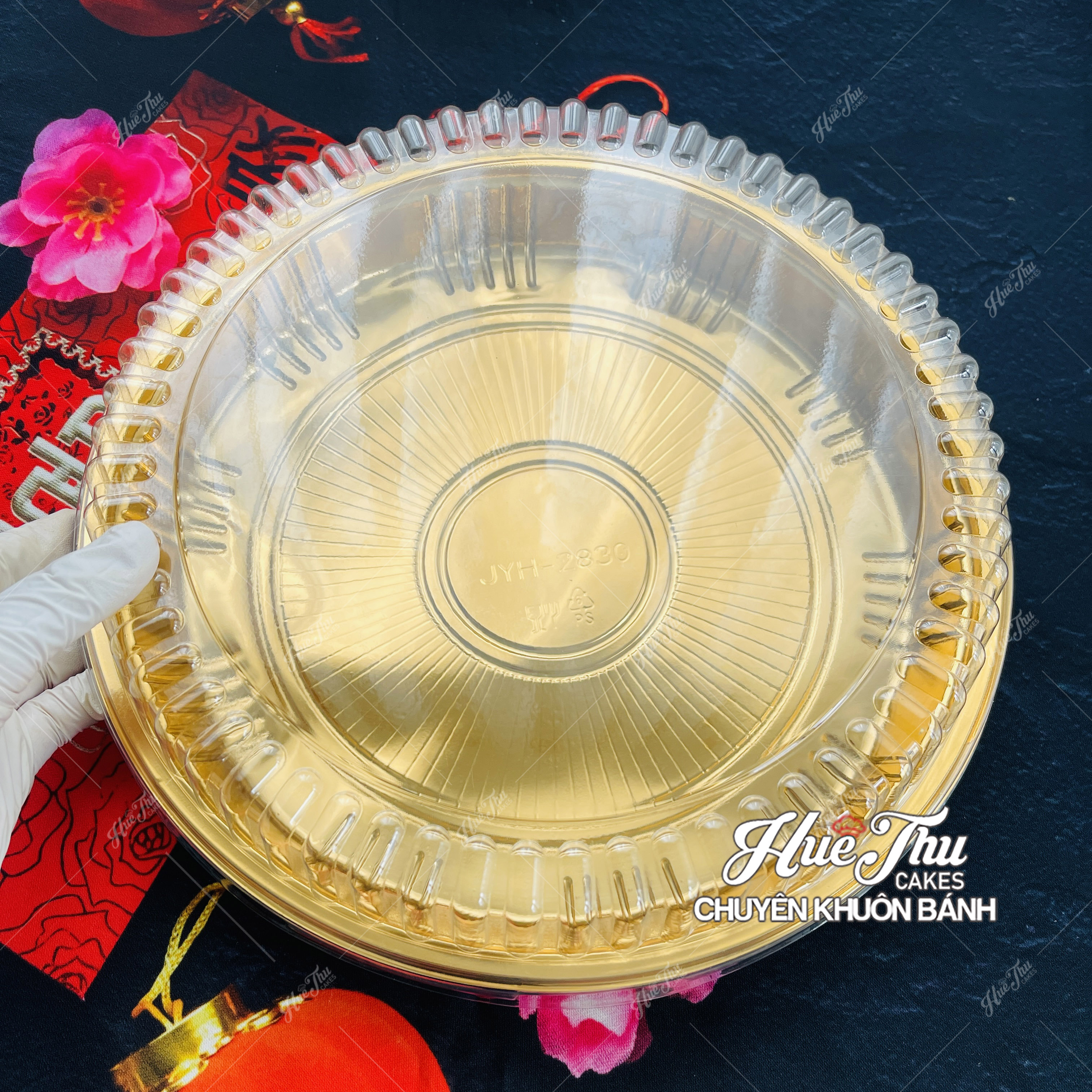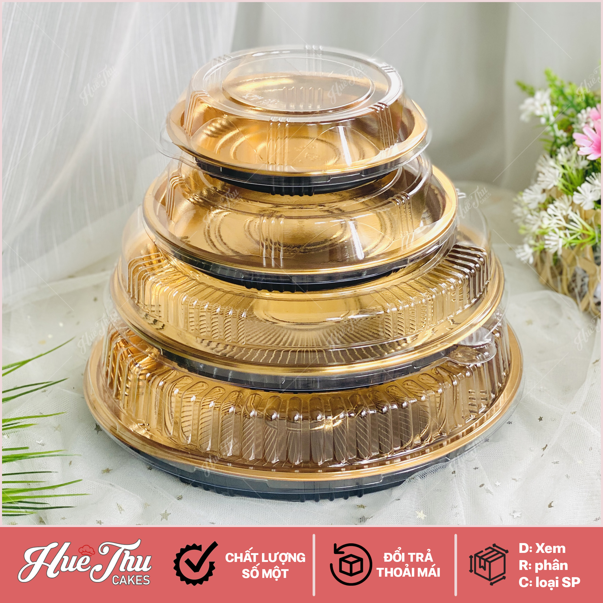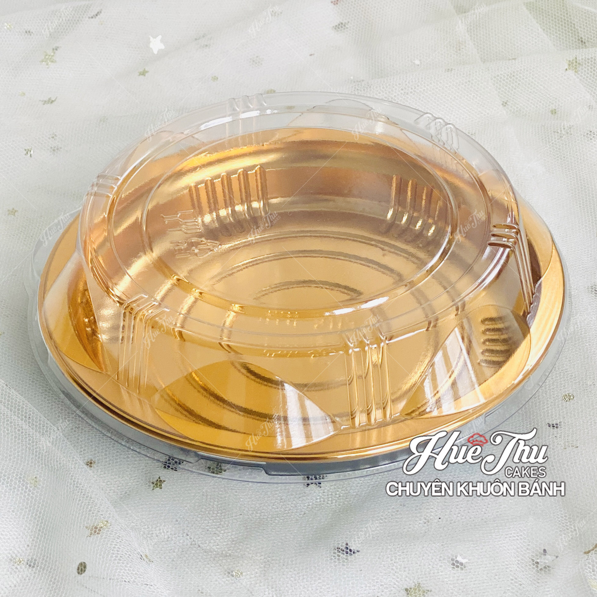 Hộp nhựa vàng hình tròn HC5 - Đẳng cấp sang trọng, bảo quản bánh tươi ngon