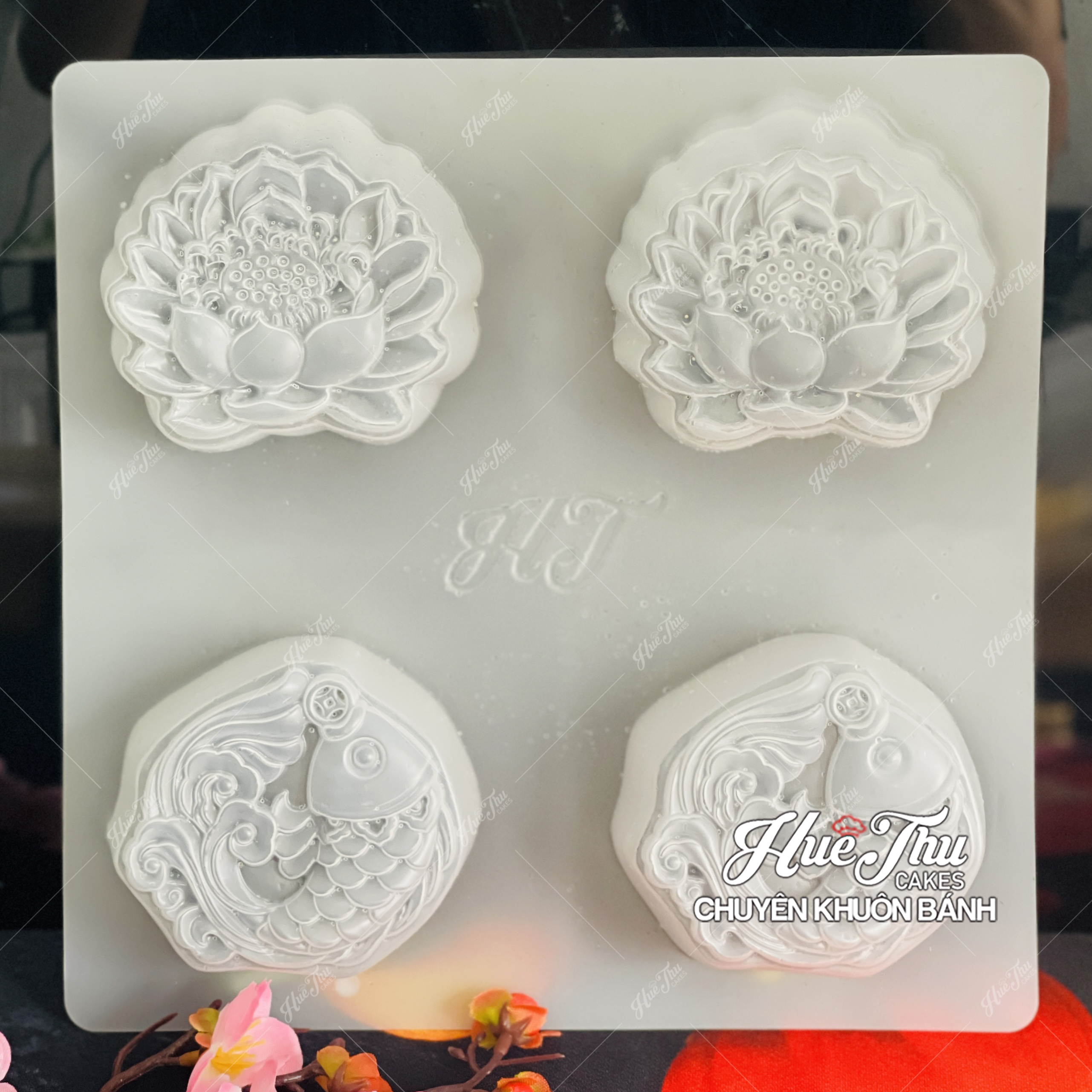 Khuôn rau câu, nhấn xôi Cá Chép Hoa Sen N7 (vỉ 4 khuôn) làm bánh rau câu, ép xôi