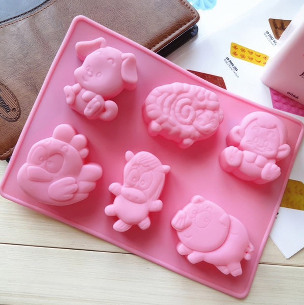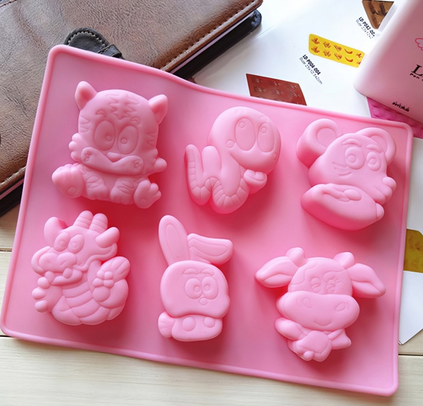 Khuôn silicon 12 Con Giáp A30 (2*vỉ 6 hình) làm bánh rau câu 3D 4D nhấn xôi, fondant, socola, nến hanmade