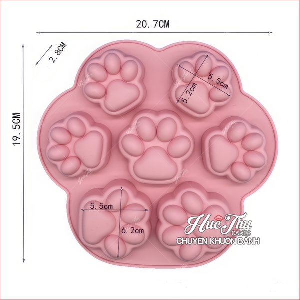 Khuôn silicon Bàn Chân Mèo A19 (vỉ 7 hình) làm bánh rau câu 3D 4D nhấn xôi, fondant, socola, nến hanmade