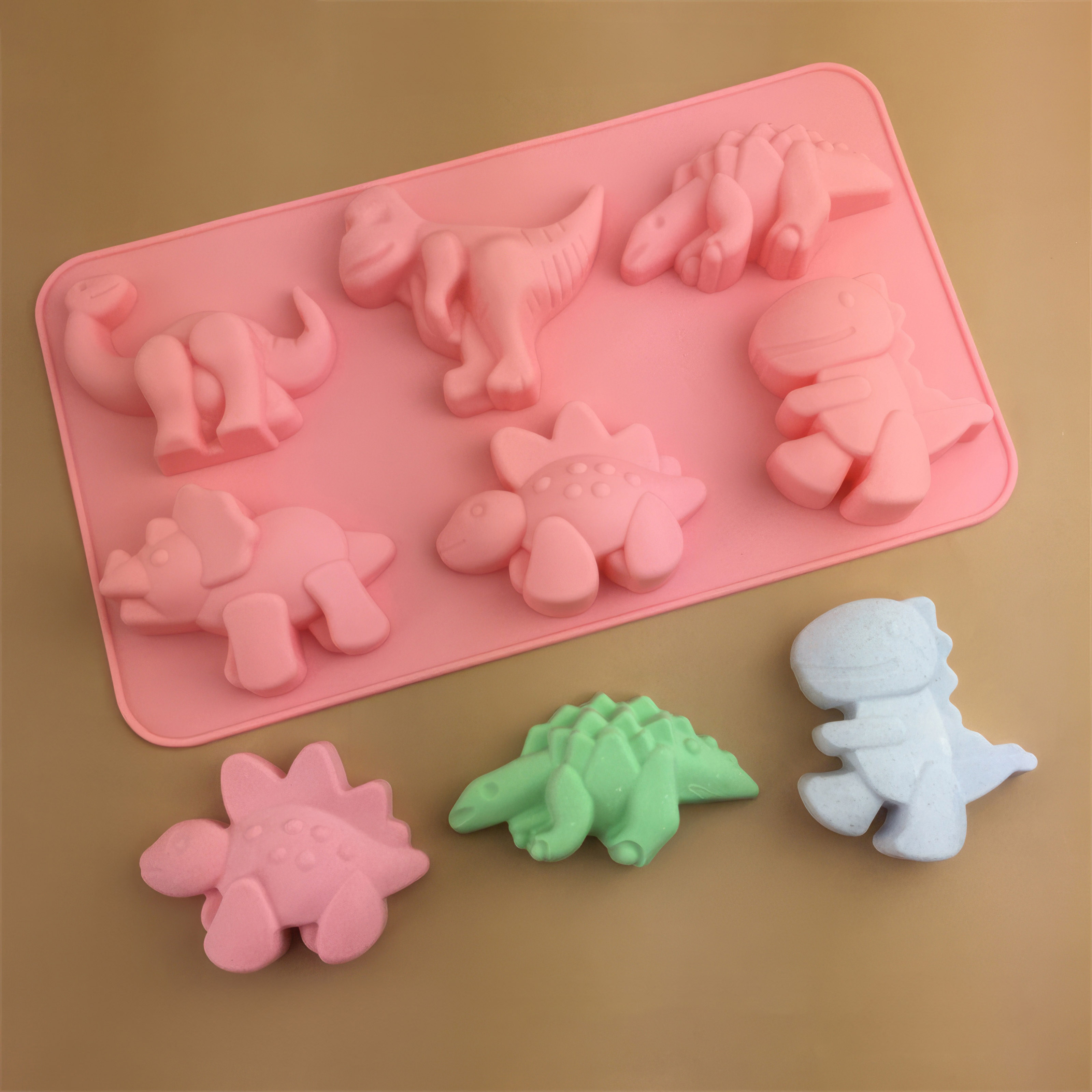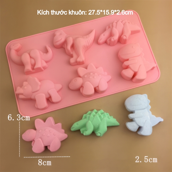 Khuôn silicon Khủng Long A54 (vỉ 6 hình) làm bánh rau câu 3D 4D nhấn xôi, fondant, socola, nến hanmade