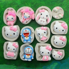 Khuôn silicon Mèo Hello Kitty, Doraemon A63 làm bánh rau câu 3D 4D nhấn xôi, fondant, socola, nến hanmade
