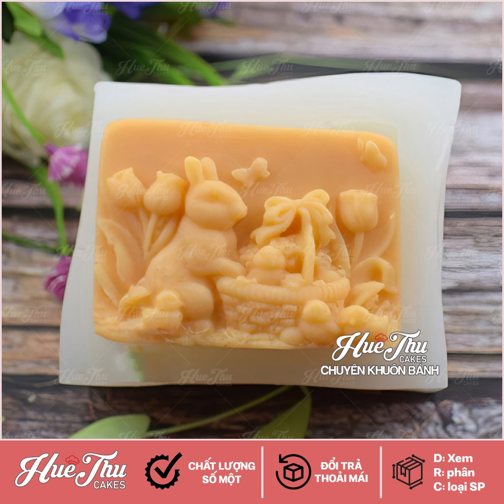 Khuôn silicon Thỏ Ngọc Bên Giỏ Quà phù hợp làm bánh rau câu 3D, 4D, tạo hình khác