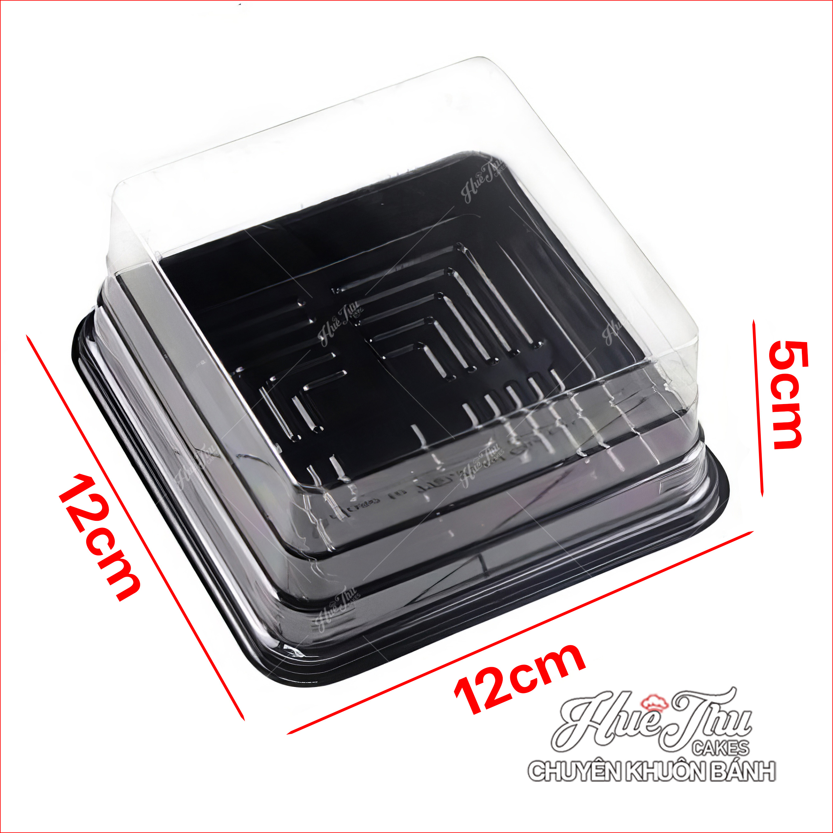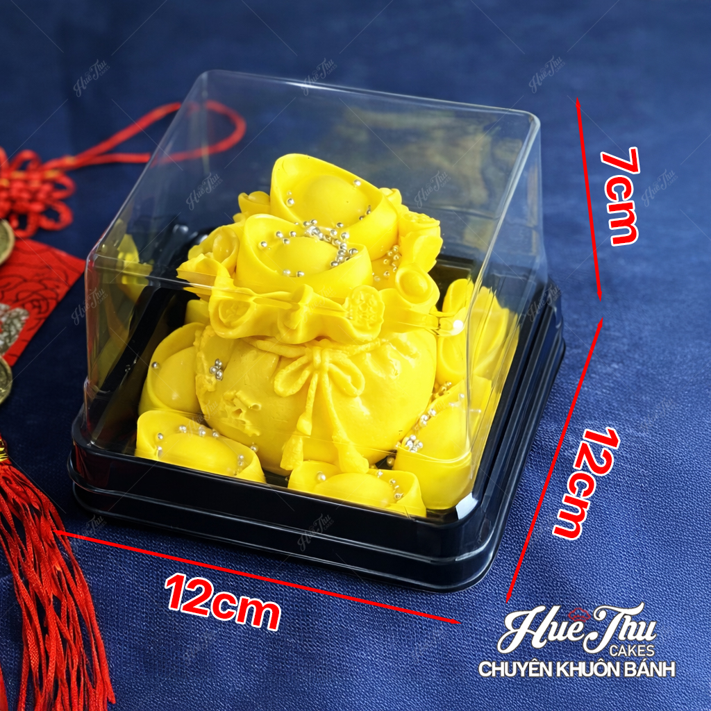 Thiết kế Hộp có nắp. Đế hộp màu đen đen sang trọng, cứng cáp tiện dụng phù hợp đựng nhiều dòng bánh. Hộp được chống trơn, trượt nhờ lớp đế có rãnh giảm ma sát. Hộp nhựa nắp chụp được làm từ chất liệu nhựa trong ở nắp giúp người dùng có thể dễ dàng quan sát bánh từ bên ngoài tạo nên một vẻ ngoài độc đáo cho bất kì sản phẩm bánh nào.